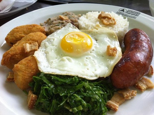 Prato típico da culinária paulista que consiste em tutu de feijão, arroz, bisteca de porco, ovo frito, couve refogada, banana à milanesa e torresmo